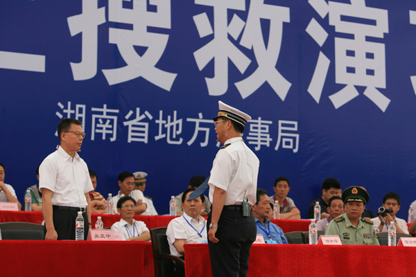 省交通運輸廳廳長(cháng)吳亞中(圖左)擔任現場(chǎng)總指揮,省地方海事局局長(cháng)陳健強(圖右)擔任現場(chǎng)執行總指揮。 此次演習由湖南省人民政府主辦、湖南省交通運輸廳、湖南省地方海事局承辦,副省長(cháng)韓永文擔任演習總指揮。 演習于當日上午9時(shí)展開(kāi)。演習模擬一艘普貨船1號從湘江長(cháng)沙鑫宇公司碼頭出發(fā)下行,航行至杜甫江閣水域下游花炮平臺正對水域時(shí),與客渡船1號(載客30人、船員2人)發(fā)生碰撞,客渡船1號2名旅客受傷、10名乘客落水,船舶進(jìn)水失控,面臨沉沒(méi)危險。普貨船1號避讓落水人員時(shí)又與航經(jīng)此水域的油船1號(裝載柴油500噸)發(fā)生碰撞,致油船1號油艙破損,在自救過(guò)程中發(fā)生火災、爆炸,并發(fā)生柴油泄漏。 經(jīng)湖南省水上搜救中心組織、指揮、協(xié)調專(zhuān)業(yè)和社會(huì )力量全力救助,落水人員全部獲救,受傷人員緊急轉送到市區醫院,遇險乘客安全轉移;遇險船舶拖至安全水域靠泊。油船大火被撲滅,溢油得到控制,油污得到有效清除。演習歷時(shí)90分鐘,取得圓滿(mǎn)成功。 據悉,我省共有航道里程11968公里,居全國第三;渡口6074座,渡船4203艘,有船水庫145座、2700平方公里,均居全國第一。2009年全省完成水路貨運量1.18億噸、貨物周轉量255億噸公里,與“十五”末的2005年相比,分別增長(cháng)156%、34%,我省水路貨運量約占全省社會(huì )運輸總量的10%,水路貨物周轉量占全社會(huì )總量的13%。水路運輸快速增長(cháng),確保水運安全,提高全省水上應急搜救能力日益重要。此次演習不僅檢驗了《湖南省水上搜救應急預案》的實(shí)用性和可操作性,以及多部門(mén)聯(lián)合應急救援機制,而且積累了水上人命救助、船舶消防、水域防污染等方面的實(shí)戰經(jīng)驗,提高了我省水上應急搜救的組織、協(xié)調和指揮能力。 韓永文在演習順利結束后指出,在水運經(jīng)濟快速發(fā)展的今天,我們必須高度重視水上交通安全和水運環(huán)境保護工作,要時(shí)刻警醒、時(shí)刻準備,要全面提高監管救助和應急水平,及時(shí)有效地應對水上突發(fā)應急事件,切實(shí)保障人民生命財產(chǎn)安全。全省各地各有關(guān)部門(mén)、單位要以此次演習為契機,認真總結經(jīng)驗,從“保障人民生命財產(chǎn)安全”的高度,把水上應急管理工作擺到更加突出的位置,用更多的精力,采取更強的措施,切實(shí)做好應對水上突發(fā)事件工作,為維護公共安全、構建和諧社會(huì )提供有力保障。