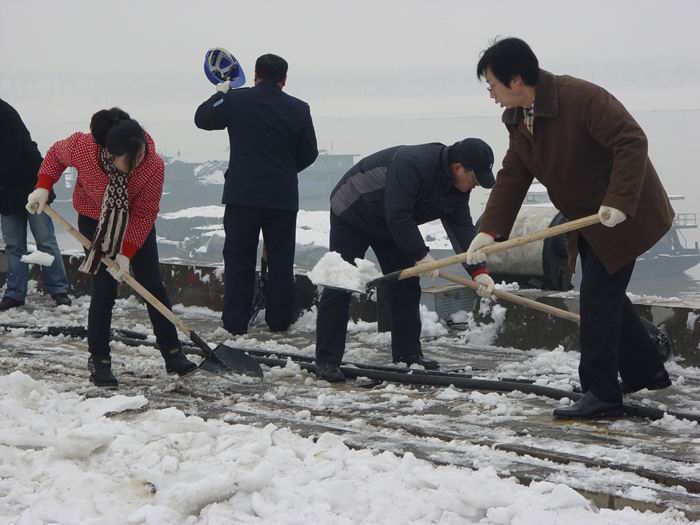 近日,長(cháng)沙地區遭遇40年來(lái)最強降雪,地處長(cháng)沙大城北的長(cháng)沙新港面對這一輪冰雪來(lái)襲,采取各種有效措施積極應對,堅持安全生產(chǎn)的情況下,保證港口暢通。 由于降雪強度太大,持續時(shí)間長(cháng),碼頭上積雪很深,為確保生產(chǎn)安全,公司決定1月20日當天停止碼頭作業(yè)半天,并派工作人員跟貨主、船主做好解釋工作,得到了他們的理解與支持。 大雪一停,全司總動(dòng)員,由公司領(lǐng)導帶頭,管理部門(mén)工作人員與生產(chǎn)一線(xiàn)員工積極投入碼頭作業(yè)區域和港區閘口前鏟雪除冰行動(dòng),以方便進(jìn)出港裝卸貨物的貨車(chē)和工作人員進(jìn)出。經(jīng)過(guò)員工們的共同努力,港區閘口前沿、碼頭作業(yè)區域及辦公樓前坪等地的積雪已被清理干凈。1月20日下午,長(cháng)沙新港國際集裝箱碼頭和件雜貨碼頭均已恢復生產(chǎn),碼頭上數臺吊車(chē)又開(kāi)始了運轉,有秩序地起卸貨物,大雪過(guò)后的長(cháng)沙新港依舊繁忙如昔。 |