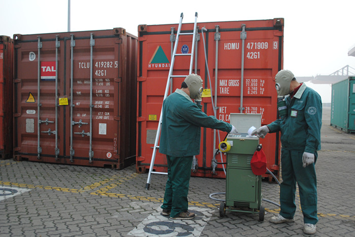 日前,中南地區第一臺最現代化的“移動(dòng)式微電腦施藥器”在長(cháng)沙新港投入使用。近日,湖南省進(jìn)出口檢驗檢疫局技術(shù)人員,在長(cháng)沙新港首次對國際集裝箱采用封閉式消毒、熏蒸。這是我省使用的第一臺消毒熏蒸設備,結束商檢開(kāi)箱施藥消毒熏蒸的歷史。
