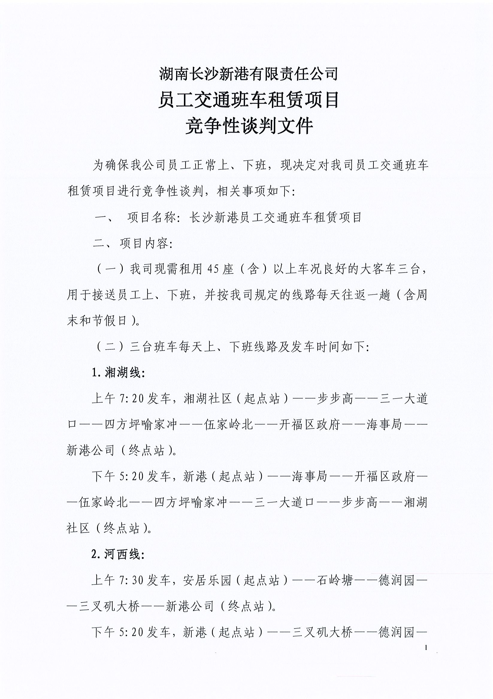 湖南長(cháng)沙新港有限責任公司 員工交通班車(chē)租賃項目競爭性談判邀請公告