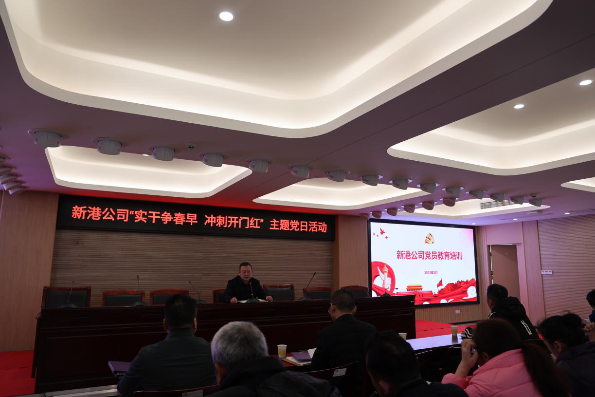 實(shí)干爭春早 沖刺開(kāi)門(mén)紅 中共湖南長(cháng)沙新港有限責任公司委員會(huì )主題黨日活動(dòng) 為扎實(shí)擔當起學(xué)習宣傳貫徹黨的二十大精神排頭兵的光榮使命,教育引導廣大黨員干部從黨的二十大專(zhuān)題學(xué)習汲取精神力量,在新的一年里,進(jìn)一步堅定理想信念,主動(dòng)肩負時(shí)代重任,開(kāi)啟新征程。2月17日上午,長(cháng)沙交通集團新港公司開(kāi)展學(xué)習貫徹黨的二十大精神“實(shí)干爭春早,沖刺開(kāi)門(mén)紅”主題黨日活動(dòng),此次活動(dòng),以“微影片、微黨課、微實(shí)事、黨員教育培訓”等多種形式推動(dòng)黨的二十大精神落地見(jiàn)效。公司黨委副書(shū)記、董事、總經(jīng)理辛華作宣講,班子成員、公司中層管理人員、各支部黨員共76人參加活動(dòng)。 深學(xué)悟初心-【微影片】 全體黨員干部集中觀(guān)看2022年度湖南反腐警示片《忠誠與背叛》。通過(guò)觀(guān)看警示教育片,引導黨員上好廉潔教育“新年第一課”,教育全司廣大黨員干部面對誘惑要保持清醒的頭腦,自覺(jué)抵制各種腐敗現象的侵蝕,牢固樹(shù)立正確的人生觀(guān)、利益觀(guān)和權力觀(guān),干干凈凈做事,老老實(shí)實(shí)做人。  篤行求實(shí)效-【微黨課】 學(xué)理論之思,踐初心之行。新港公司以“實(shí)干爭春早,沖刺開(kāi)門(mén)紅”為主題,從七個(gè)黨支部里的推選黨員干部帶頭講,鼓勵黨員人人上臺講【微黨課】,突出“微”這個(gè)形式,聚焦“黨”這個(gè)靈魂,利用“課”這個(gè)載體,教育廣大黨員從不同層面、不同角度深刻領(lǐng)會(huì )黨的理論創(chuàng )新成果,以新思想、新觀(guān)念、新思路、新舉措,開(kāi)創(chuàng )公司高質(zhì)量發(fā)展新局面。