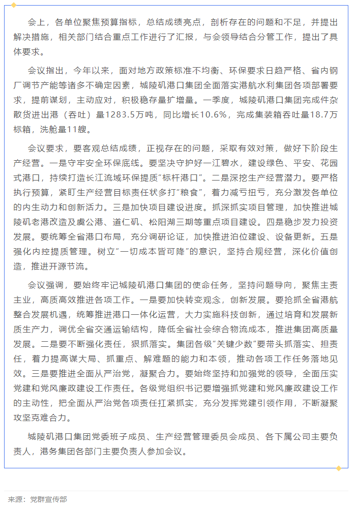 城陵磯港口集團召開(kāi)一季度生產(chǎn)經(jīng)營(yíng)分析會(huì )