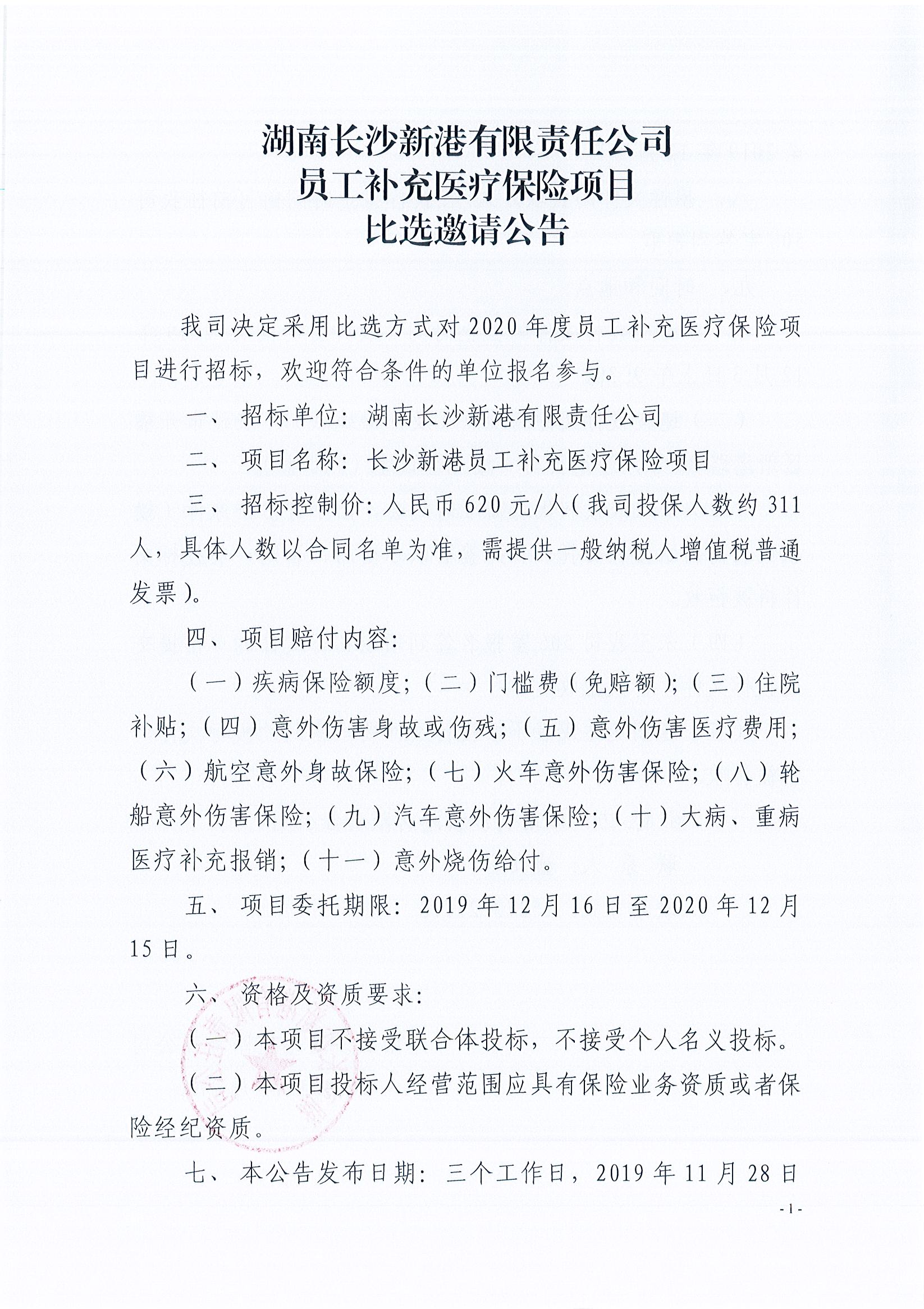 湖南長(cháng)沙新港有限責任公司員工補充醫療保險項目比選邀請公告