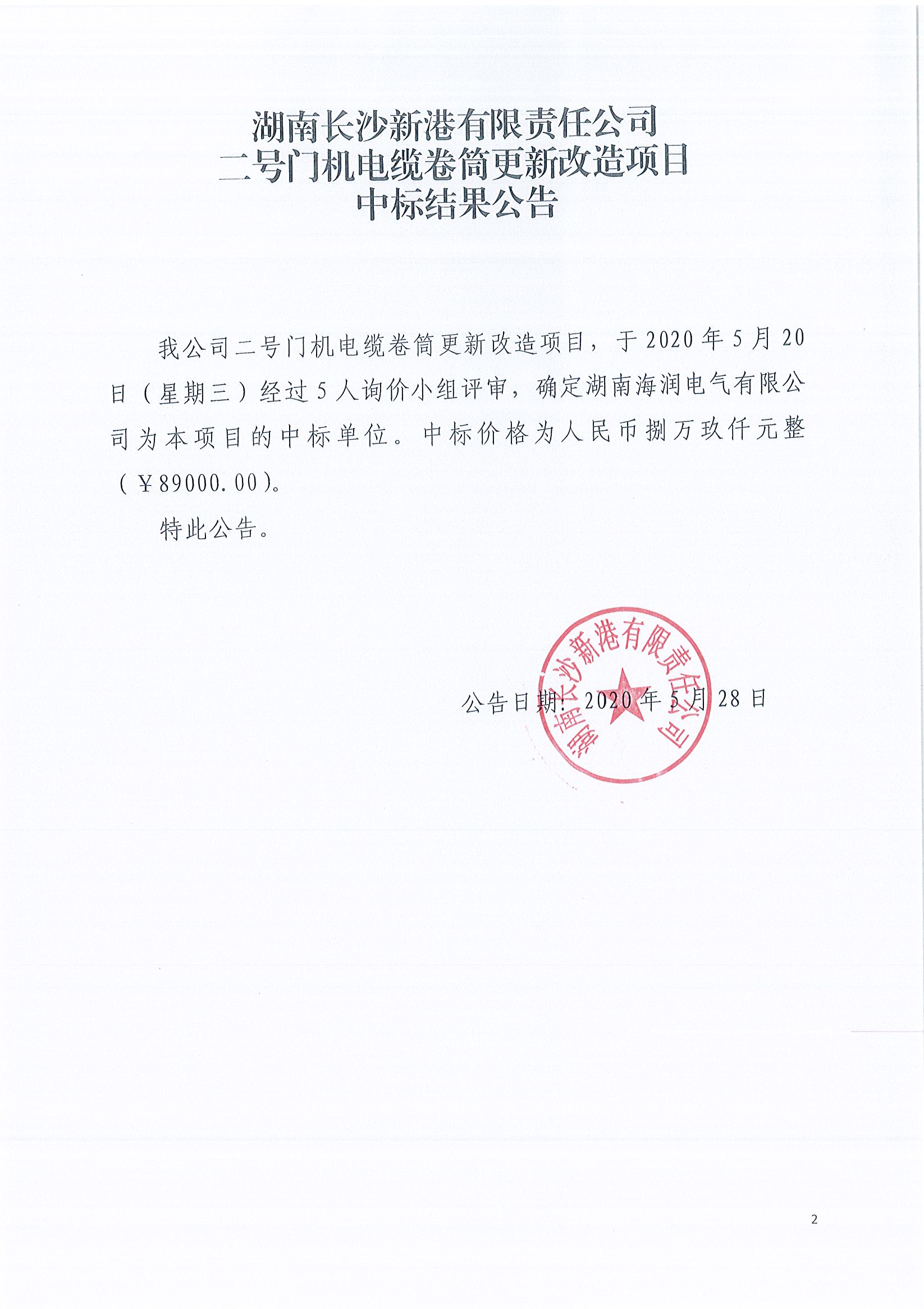 二號門(mén)機電纜卷筒更新改造項目《中標結果公告》