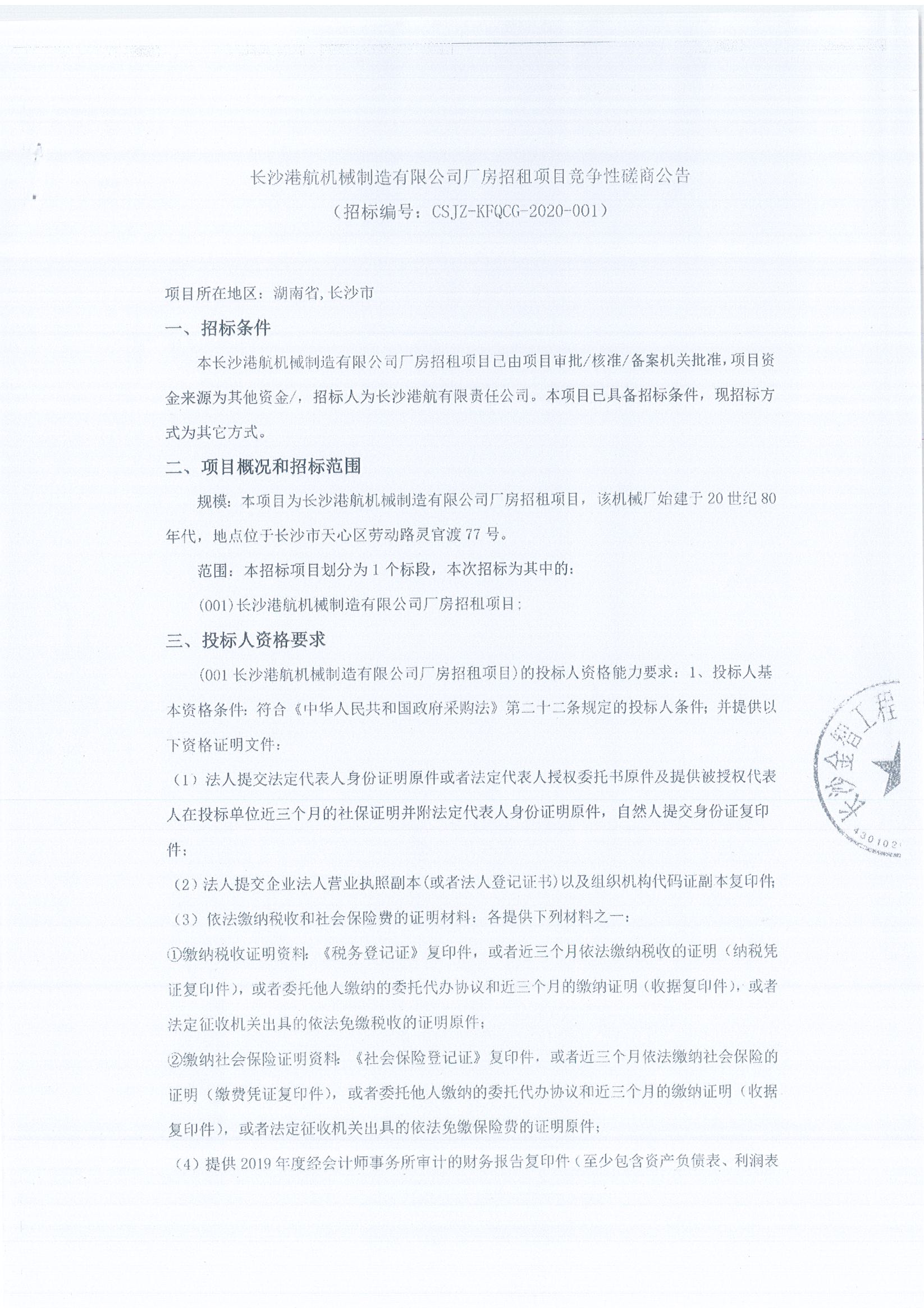 長(cháng)沙港航機械制造有限公司廠(chǎng)房招租項目競爭性磋商公告