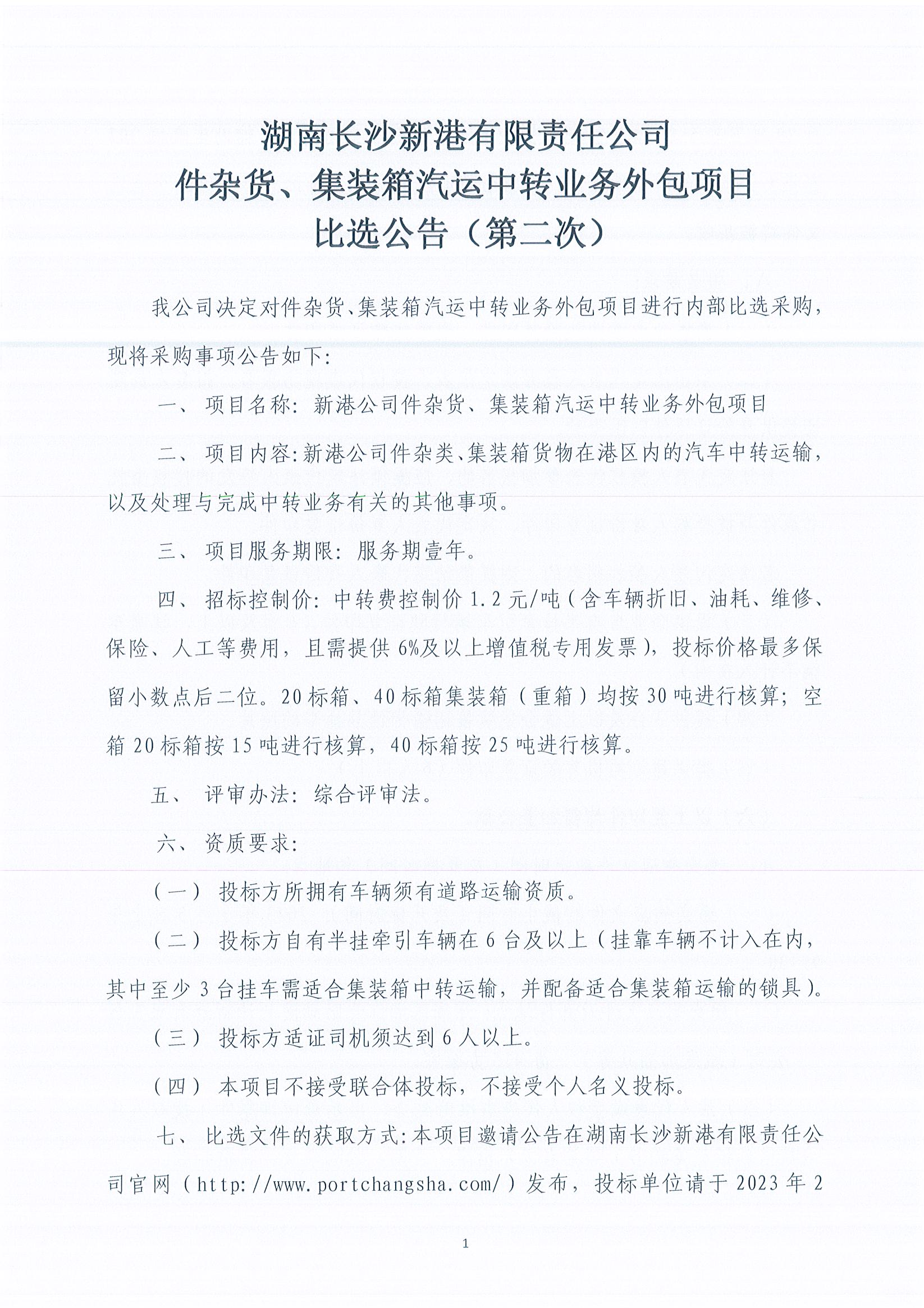 件雜貨、集裝箱汽運中轉業(yè)務(wù)外包項目比選公告(第二次)