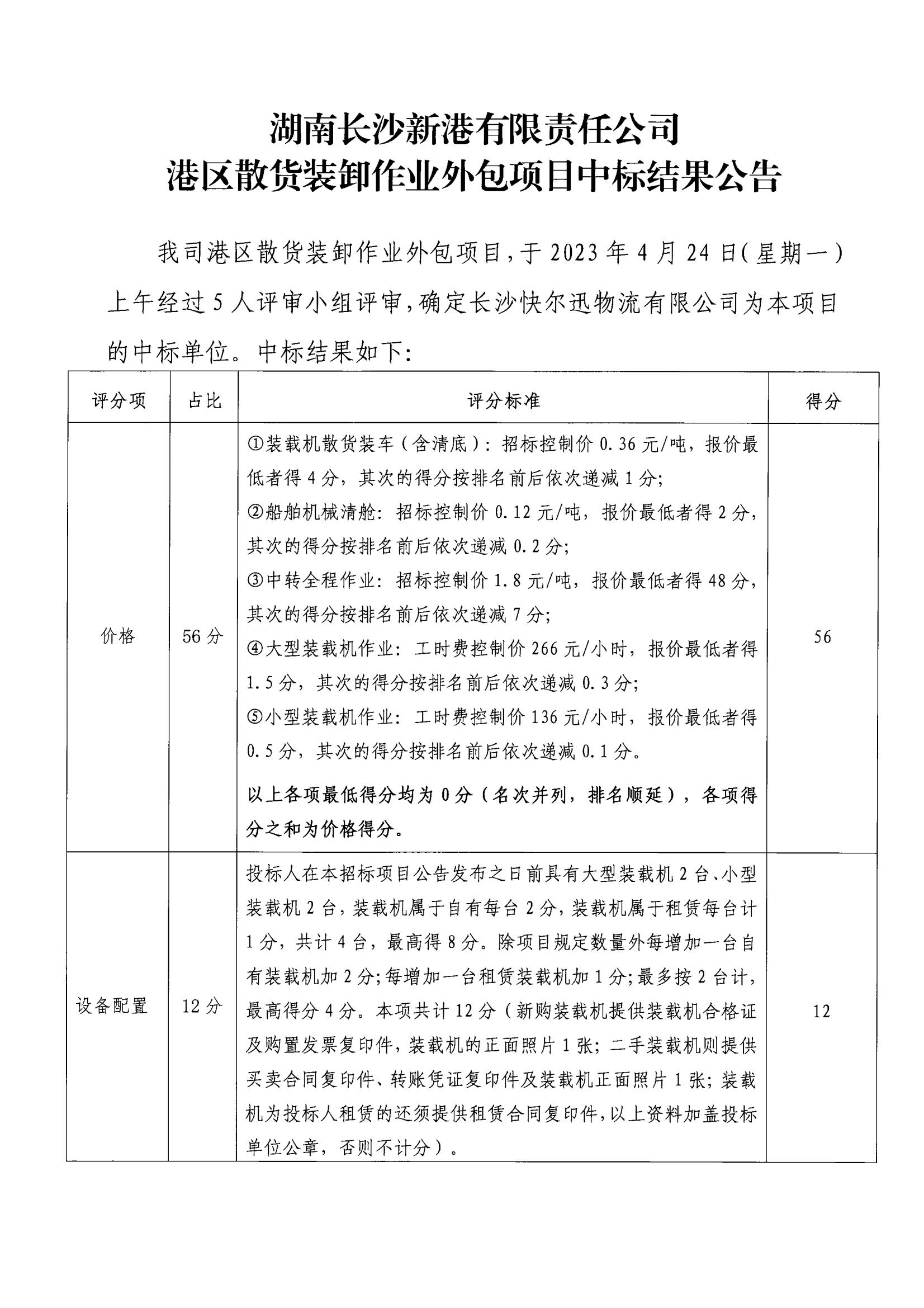 港區散貨裝卸作業(yè)外包項目中標結果公告