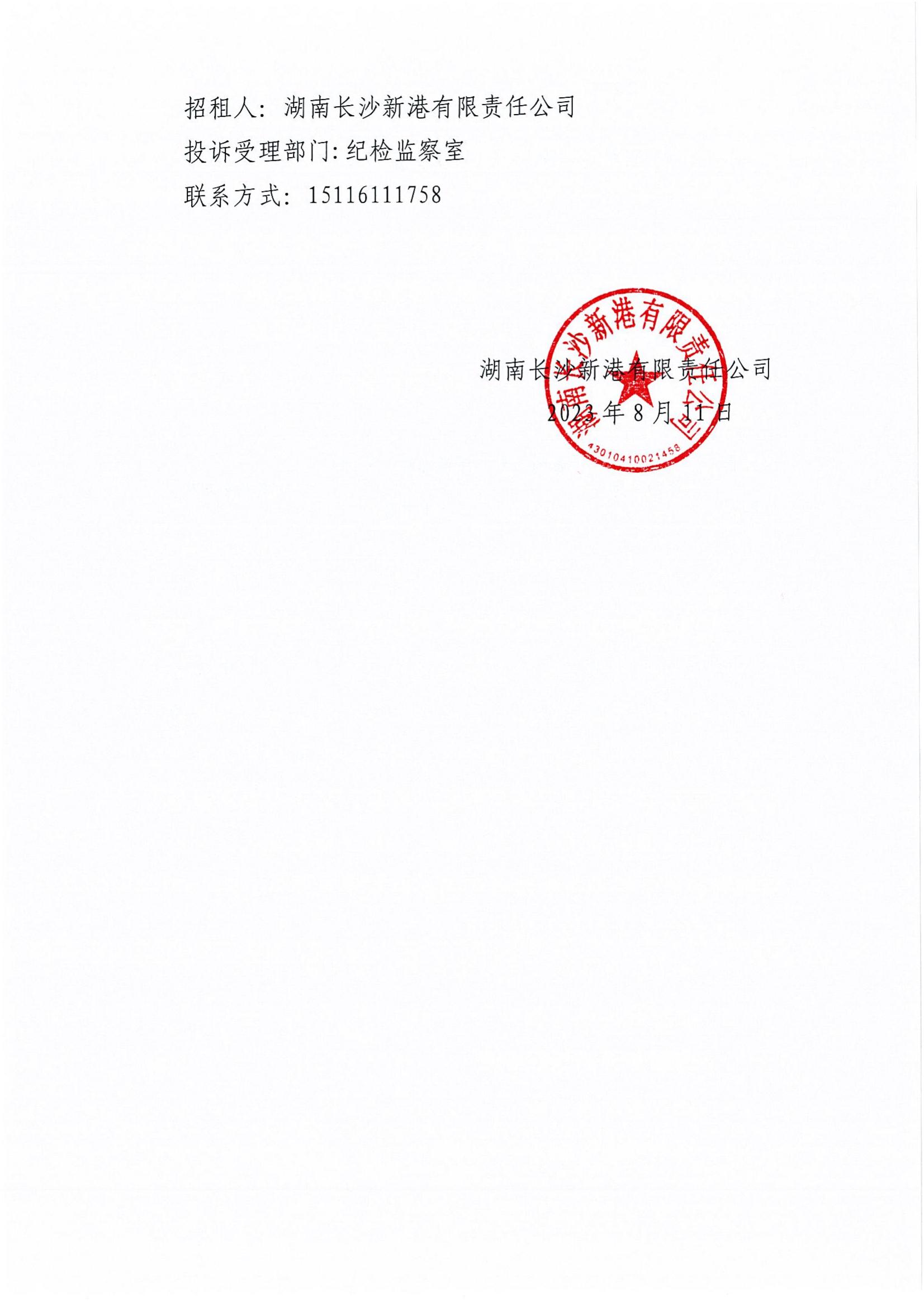 湖南長(cháng)沙新港有限責任公司辦公樓承租候選人公示