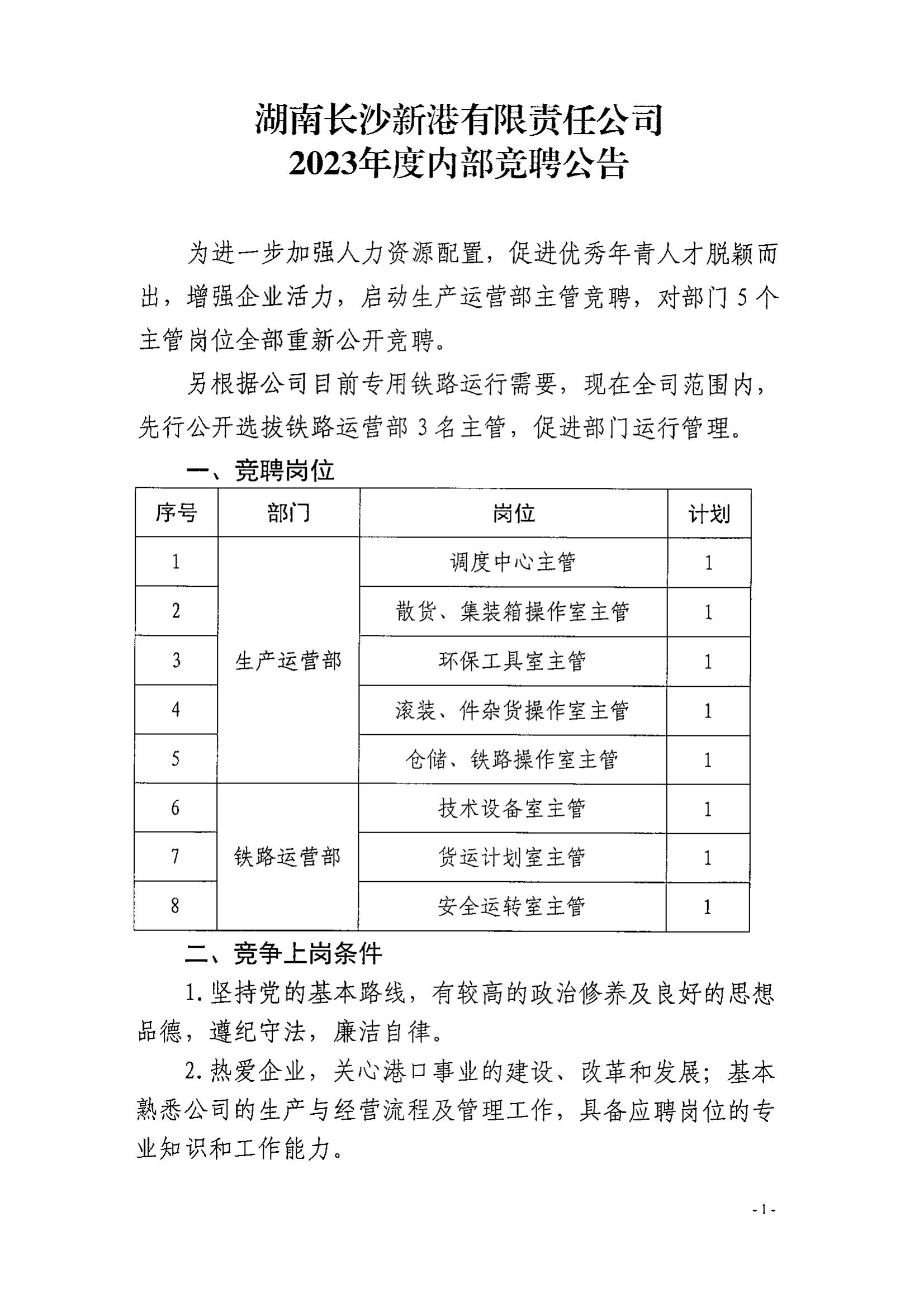 新港公司2023年度內部競聘公告