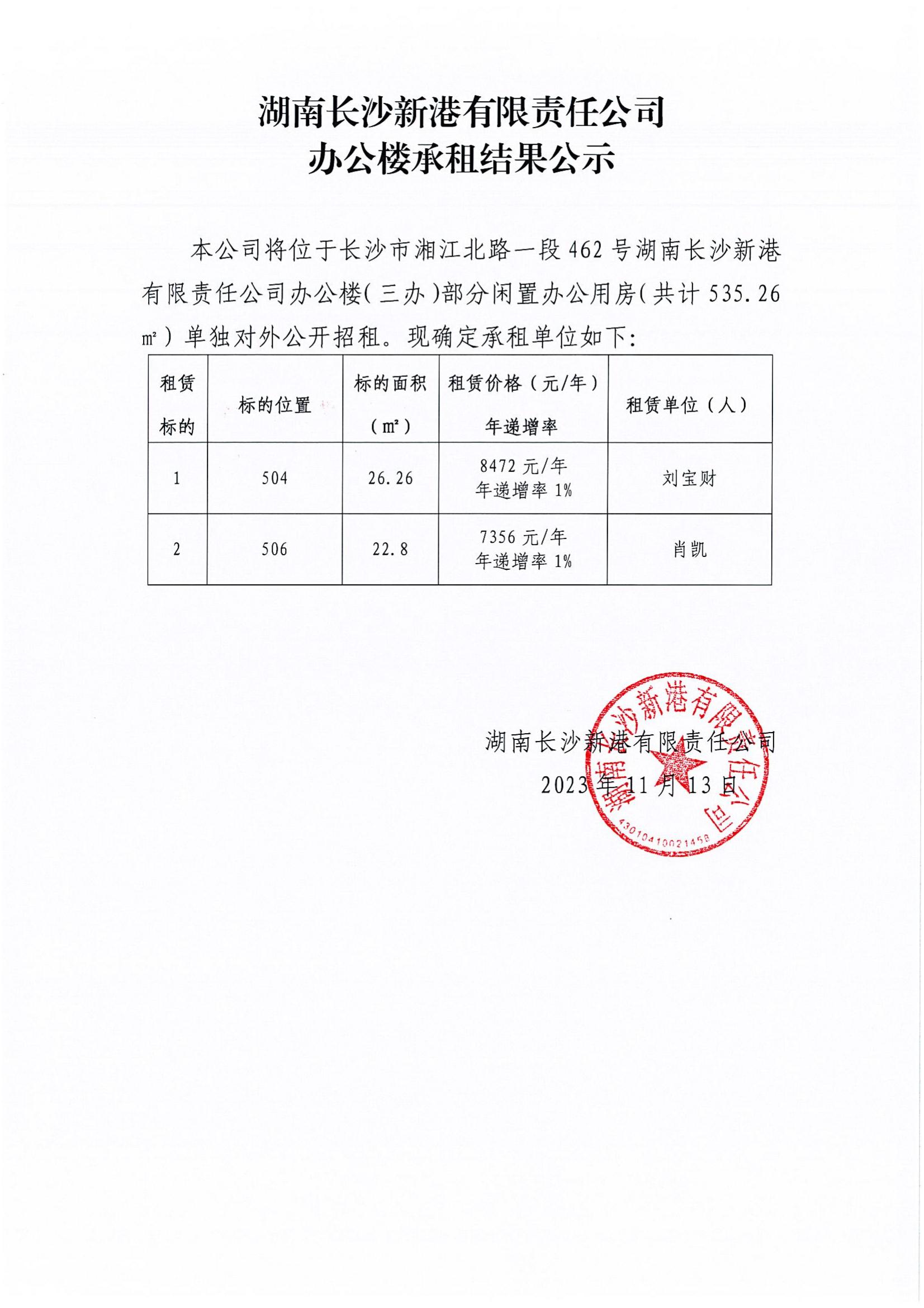 湖南長(cháng)沙新港有限責任公司辦公樓承租結果公示