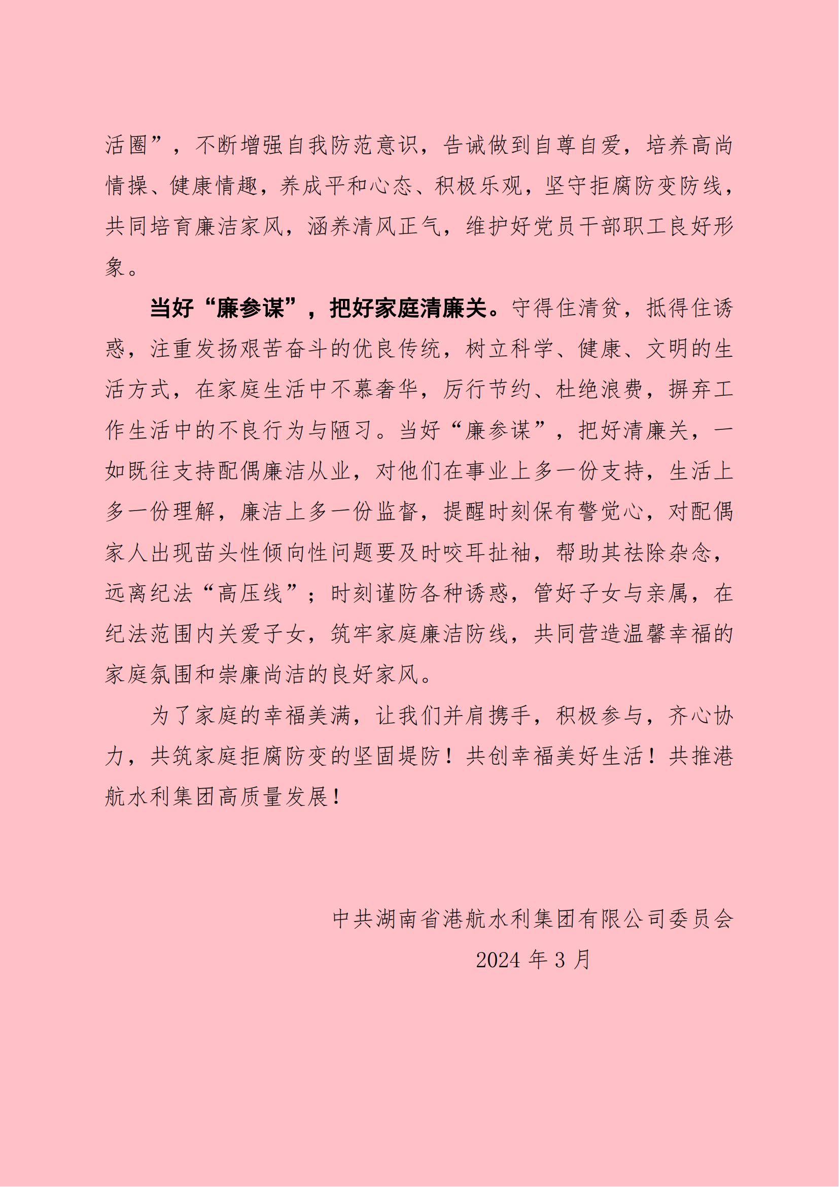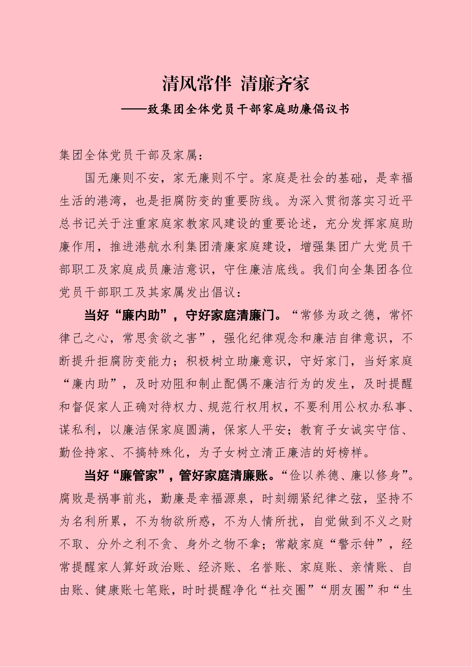 清風(fēng)常伴 清廉齊家—致集團全體黨員干部家庭助廉倡議書(shū)