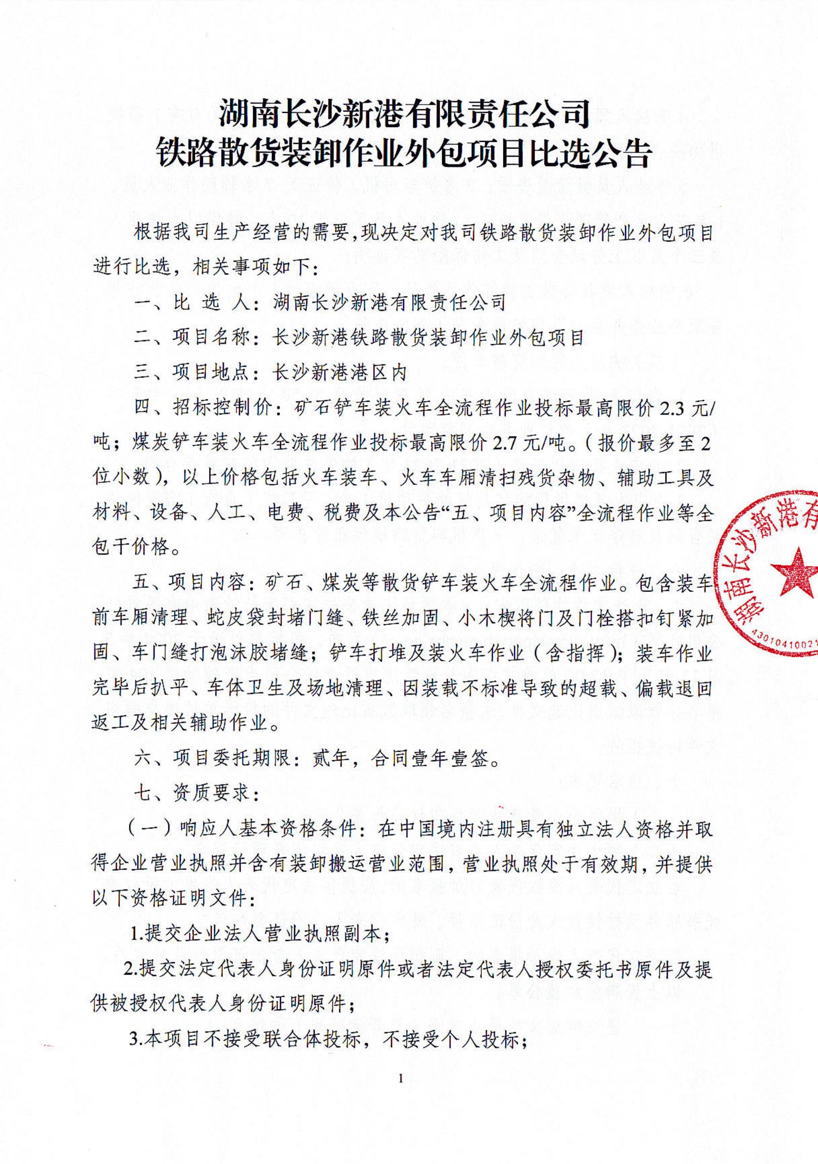 鐵路散貨裝卸作業(yè)外包項目比選公告
