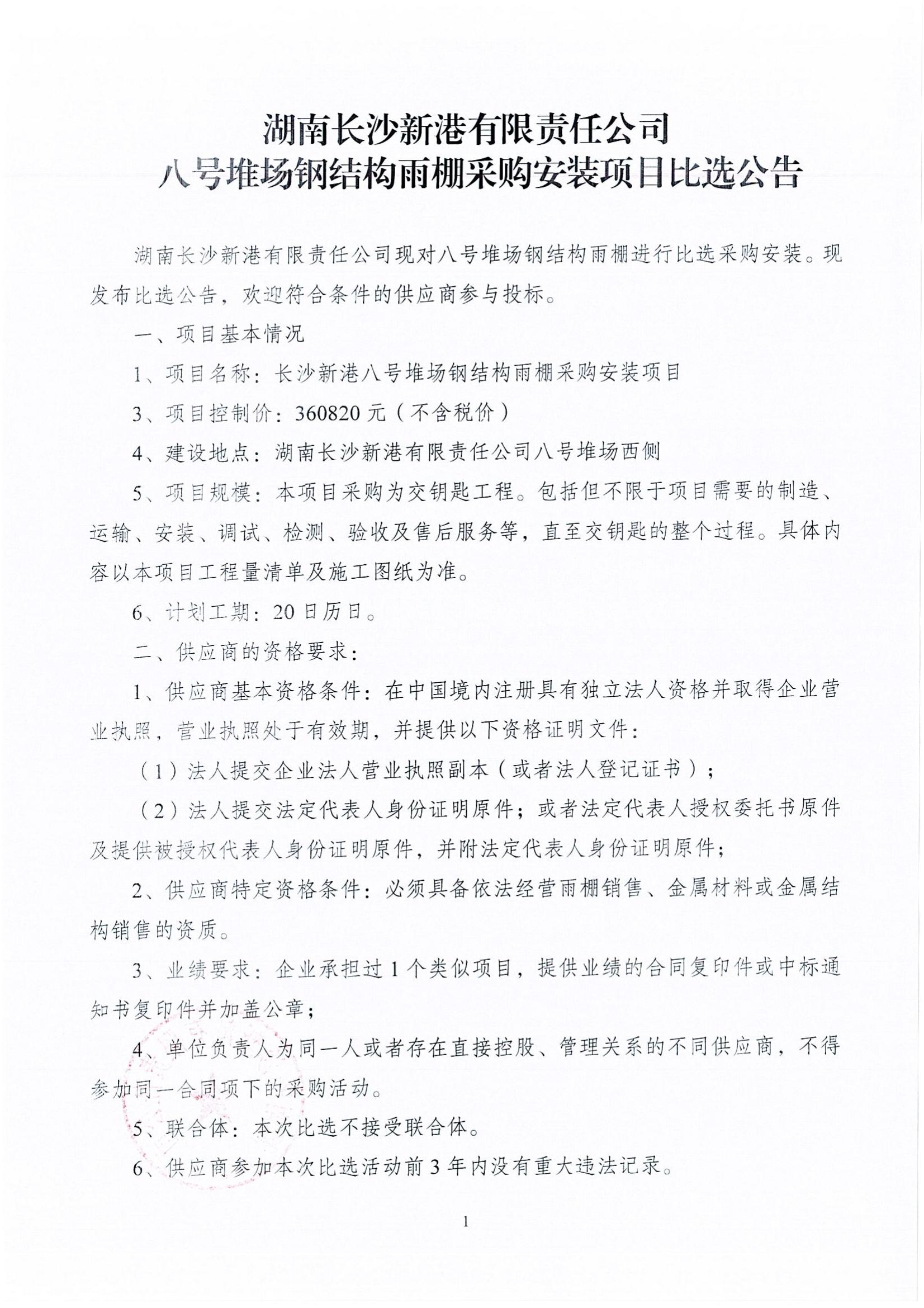 長(cháng)沙新港八號堆場(chǎng)鋼結構雨棚采購安裝項目比選公告