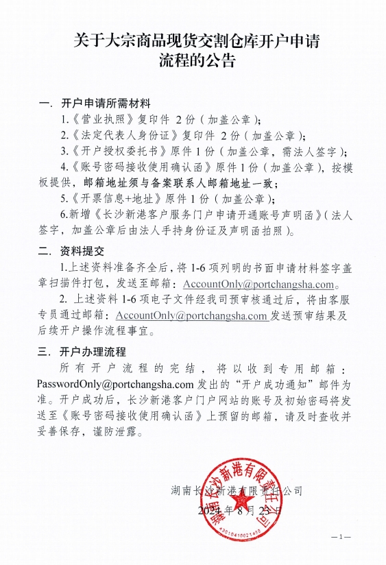 關(guān)于大宗商品現貨交割倉庫開(kāi)戶(hù)申請流程的公告